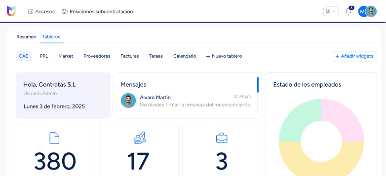 Para mí es fundamental poder contar con una plataforma como Metacontratas, intuitiva, adaptable a mis necesidades, y que me da la confianza en la validación y gestión de toda la documentación CAE. Pero además de lo dicho anteriormente, tengo que destacar el trato humano, cercano y la atención recibida por parte de su equipo en cada consulta o problema que ha podido surgir.